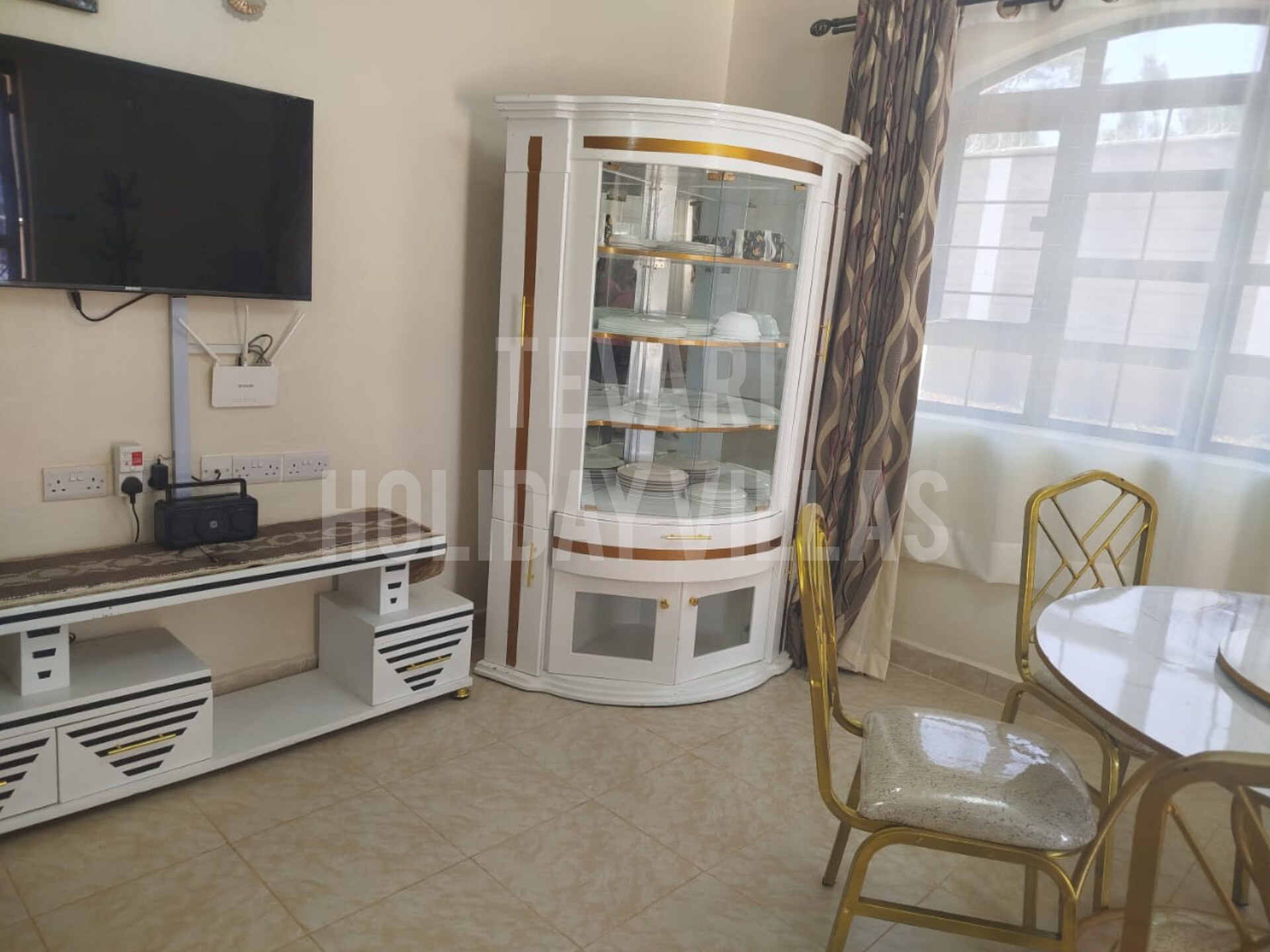 Welcome to the heart of our holiday villa—the cozy living room and dining area, designed to be the perfect gathering place for family and friends.